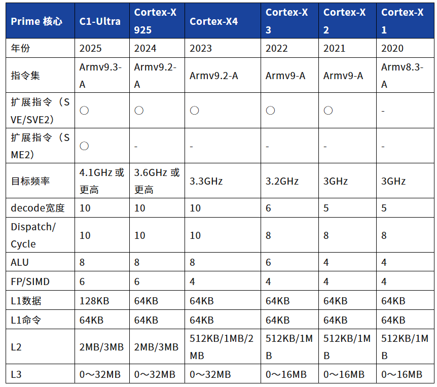 C1-Ultra对标原来的Cortex-X系列,峰值性能提升25,IPC性能提升12,同性能下功耗降低28。