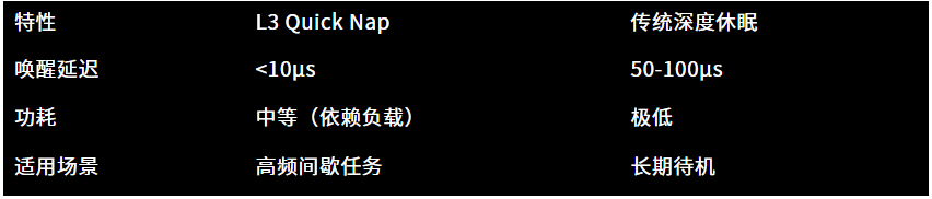 下面是一个L3 Quick Nap和传统深度休眠的数据对比: